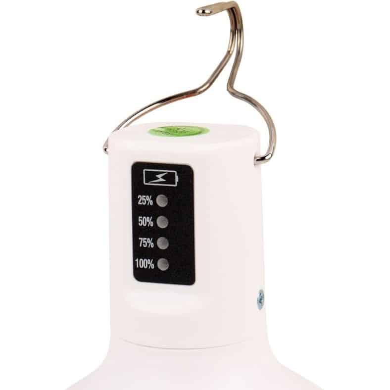 شارژ لامپ از طریق کابل USB موجود در بسته‌بندی انجام می‌شود و می‌توان آن را با آداپتور موبایل یا پاوربانک شارژ کرد. روی بدنه، یک کلید خاموش و روشن و همچنین نمایشگر میزان شارژ باتری (۲۵٪، ۵۰٪، ۷۵٪ و ۱۰۰٪) تعبیه شده تا وضعیت انرژی دستگاه را به‌راحتی کنترل کنید.