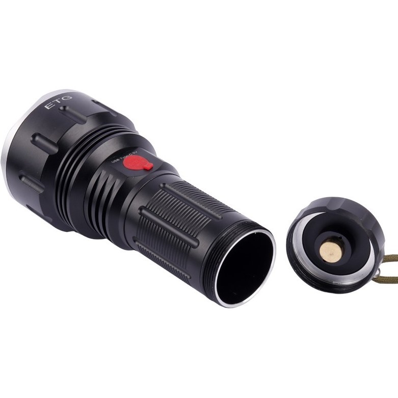 انرژی چراغ قوه از طریق باتری لیتیومی 18650 یا 26650 قابل شارژ تأمین میشود و پس از هر بار شارژ کامل، بین 3 تا 8 ساعت نوردهی مداوم را ارائه میدهد. شارژ چراغ بهوسیله درگاه USB داخلی انجام میشود که استفاده از آن را بسیار راحت و سریع کرده است.